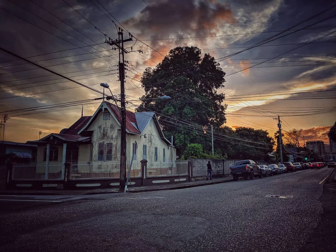 Diagonal from Alice Yard is a park called the Woodbrook Playground. During the rainy season it's green and in the dry season, it turns brown, like our mountain ranges. Over the years I have grown to appreciate this park a lot. Mainly because of its diversity. It's common to find students here. I've seen kids working on their dance choreography or march pass routines, and also some practicing javelin and football. Families host get togethers and teenage couples chat on the swings. Nearby is Ariapita Avenue which is annoying because styrofoam food containers and beer bottles always end up as litter in the park. They tend to be the messiest, and there are no bins. There are also chickens that occupy the space. In the morning you can see hens with their chicks marching across the park. They enter the park through an opening in the fence of the neighbouring fire station. There is also a homeless population that inhabits here. They often take shelter in the gazebo and appreciate a clean park, as much as we do. The neighbours hardly visit the park, but will often pop their head out and wave to the little moko jumbies in training, from their homes, in their balconies, and through their gates.