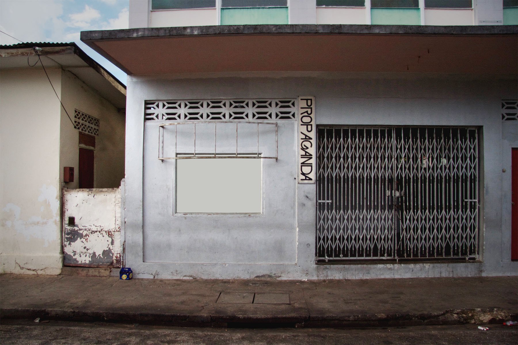 As of 2020, the exhibition surface is now located on a sidewalk window space in Belmont, Port of Spain, with the following dimensions: 42 1/8" (H) x 60 3/8" (W) or 107cm (H) x 153cm (W).